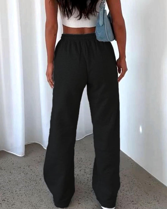 Women'S Casual Drawstring High Waisted Sweatpants Wide Straight Leg Lounge Pants with Pockets